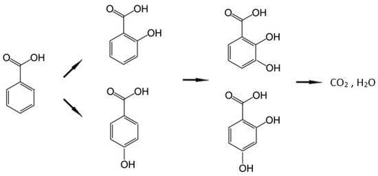Pathway of degradation of benzoic acid following ref. [28].