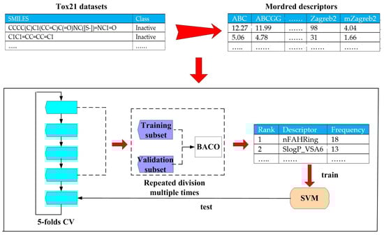 This section first describes the details of Tox21 datasets used in the experiments and then explains how to use the Modred descriptor calculator to represent drug molecules in datasets. Next, the BACO feature selection algorithm is introduced in detail.