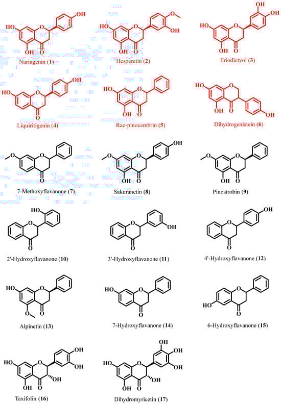 Flavanones are valuable bioactive compounds widely distributed in various plant species [1,2]. Prenyl flavanones represent a significant subclass, distinguished by the attachment of prenyl groups of varying chain lengths (C5, C10, C15) to the flavanone skeleton. This structural modification significantly improves membrane permeability and target binding capacity via increased lipophilicity [3,4]. Pharmacological studies have established the therapeutic potential of prenylated flavanones: Denticulain A exhibits selective cytotoxicity against colorectal cancer cells (IC50 = 46.08 μM for SW620; 56.83 μM for HCT-116) [5]. Notably, the phytoestrogen 8-prenylnaringenin effectively suppresses the proliferation of MCF-7 breast cancer cells and induces programmed apoptosis by selectively targeting and inhibiting the estrogen receptor-alpha (ERα) signaling pathway [6]. In terms of antioxidant activity, isoxanthohumol demonstrates significant DPPH radical scavenging capacity (EC50 = 8.38 mM), while the triply prenylated derivative ormosino exhibits more potent antioxidant activity (DPPH radical scavenging IC50 = 28.5 μM) [7,8]. Furthermore, Sekiguchi et al. reported that 6-prenylnaringenin alleviates neuropathic and visceral pain through T-type calcium channel blockade without inducing significant adverse effects [9]. These prenyl flavanones have been isolated from various plant tissues, including the flowers, fruits, and roots of Fordia cauliflora, Humulus lupulus, Eysenhardtia texana, Erythrina variegata, and Dorstenia mannii.