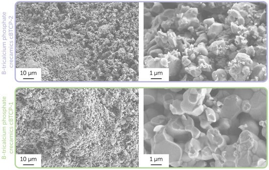 Microstructure of the cBTCP-1 and cBTCP-2 ceramic samples. Images were obtained using a secondary electron detector.