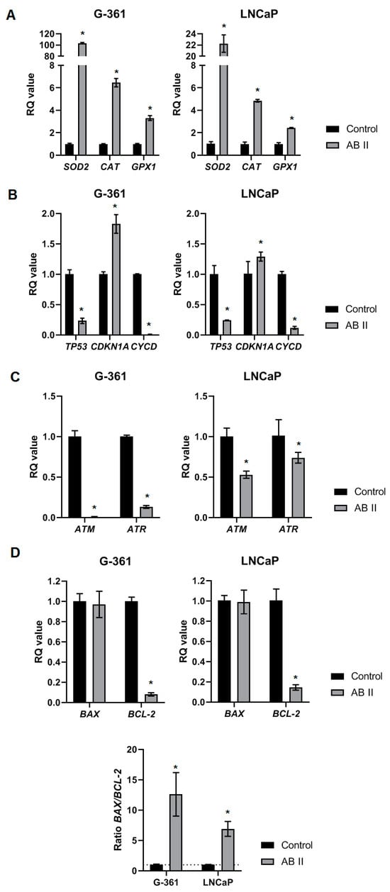2.4.3. Analysis of Gene Expression Related to Antioxidant Defense, Cell Cycle Regulation, DNA Damage Sensing and Repair and Apoptosis