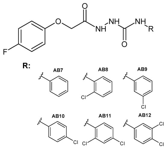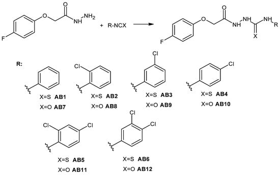 3.3. General Procedure for the Synthesis of 1-(4-Fluorophenoxyacetyl)-4-substituted Semicarbazide (AB7–AB12)
