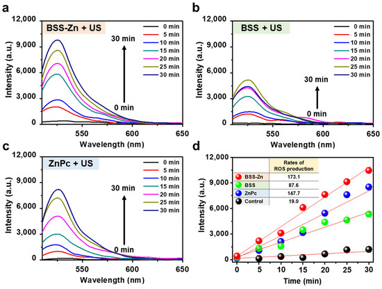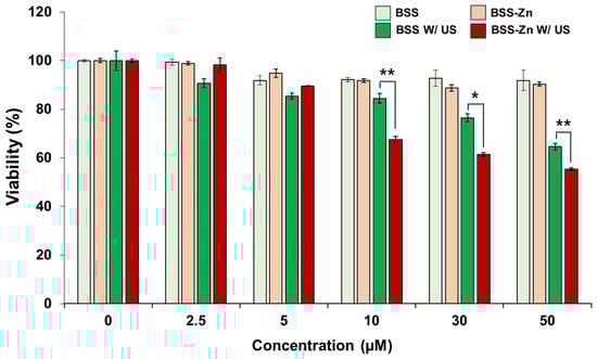 2.4. In Vitro Investigation of BSS-Zn and BSS as Potential Sonosensitizers