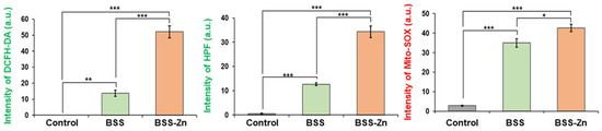 2.3. Three Different Types of ROS Generation Assays Using US-Irradiated BSS-Zn and BSS