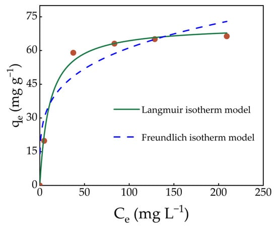 | qm (mg g−1) | KL (L mg−1) | R2 | RMSE | KF (L g−1) | 1/n | R2 | RMSE |