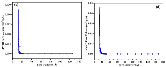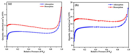 The morphological properties, including the specific surface area and porosity, of BB and OPB are assessed using N2 adsorption/desorption analysis at 77 K. The N2 adsorption–desorption plots (Figure 1a,b) and BJH pore size distribution plots (Figure 1c,d) are regenerated from our earlier published work [21,46].