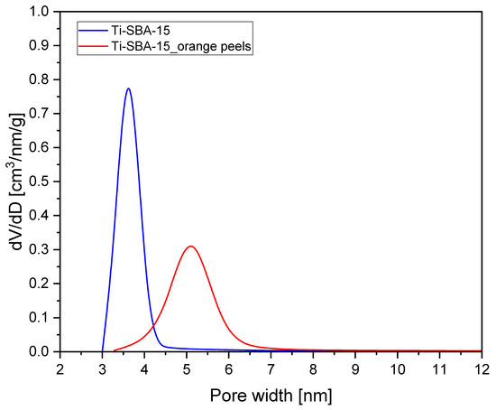 Figure 2 presents the pore size distributions of Ti-SBA-15 and Ti-SBA-15_orange peels, determined from nitrogen sorption isotherms at 77 K using BJH method.
