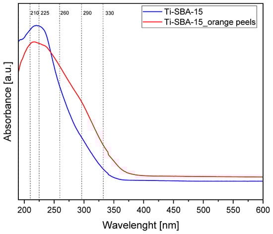 UV-Vis spectra of the Ti-SBA-15 materials (standard Ti-SBA-15 and Ti-SBA-15_orange peels (material synthesized with the addition of ground orange peels)).