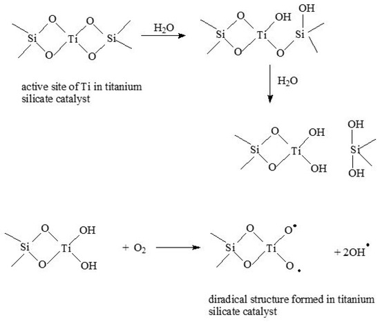 Formation of diradical structure in titanium silicate catalyst.