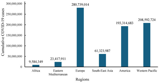 WHO data for cumulative numbers of COVID-19 cases across continents from December 2019 to 1 December 2024 [46].