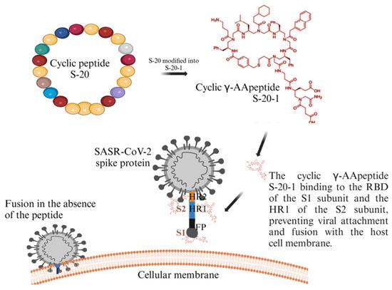 - Xue, S.; Wang, X.; Wang, L.; Xu, W.; Xia, S.; Sun, L.; Wang, S.; Shen, N.; Yang, Z.; Huang, B.; et al. A Novel Cyclic γ-AApeptide-Based Long-Acting Pan-Coronavirus Fusion Inhibitor with Potential Oral Bioavailability by Targeting Two Sites in Spike Protein. Cell Discov. 2022, 8, 88. [Google Scholar] [CrossRef]