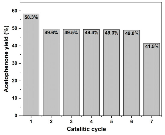 Results of the conversion values from the recovery and reuse of SC-2 over seven consecutive catalytic cycles, each lasting 90 min. All experiments were conducted under identical conditions.