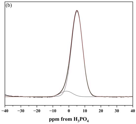 Figure 5. Representative 29Si (a) and 31P (b) MAS-NMR spectra of the selected 3S_6PMC sample. The original experimental spectrum is shown in red, while the fitted envelope obtained from spectral deconvolution is marked in black.