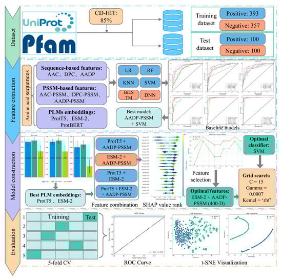 To comprehensively characterize protein sequences from multiple perspectives, a variety of sequence-based features have been designed in previous studies [59,60,61]. In this study, we adopted three widely used features, i.e., AAC, DPC, and AADP.