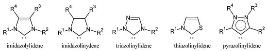 Lethal viral infections and co-infections, such as those caused by SARS-CoV-2, HIV, monkeypox, and influenza viruses, have spread worldwide. Concurrently, the number of cancer patients and cancer deaths is still continuously increasing. Hence, numerous research is addressed to find new drugs acting both as antitumor and antiviral agents, and amazing results have been obtained with metal complexes [1,2,3,4,5,6]. Among these, metal N-heterocyclic carbene (NHC) complexes (Figure 1) have represented a wonderful discovery as they present entirely appropriate prerequisites for effective drug design and quick optimization, and numerous scientific studies are being carried on in this view [6].