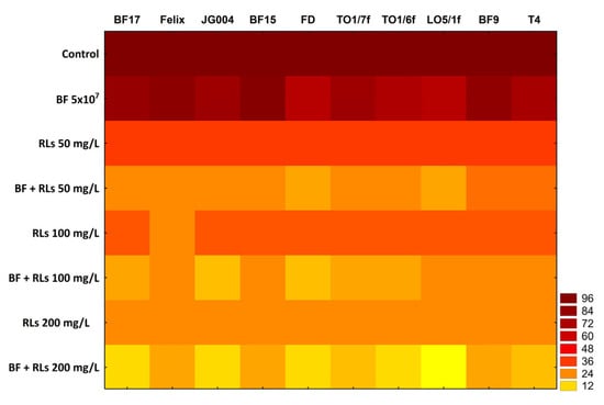 3.5. Influence of RLs on the Activity of Bacteriophages