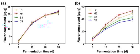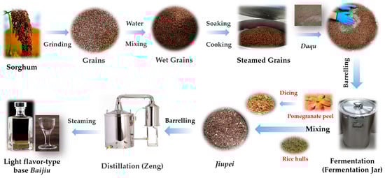 - GB/T 10781. 2-2022; Quality Requirements for baijiu—Part 2: Qingxiangxing baijiu (National Standards of the People’s Republic of China). China Standard Press: Beijing, China, 2022; ICS 67.160.10. [Google Scholar]