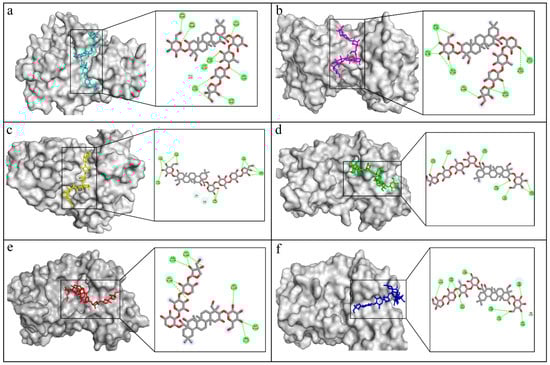 - Friesner, R.A.; Banks, J.L.; Murphy, R.B.; Halgren, T.A.; Klicic, J.J.; Mainz, D.T.; Repasky, M.P.; Knoll, E.H.; Shelley, M.; Perry, J.K.; et al. Glide: A new approach for rapid, accurate docking and scoring. 1. Method and assessment of docking accuracy. J. Med. Chem. 2004, 47, 1739–1749. [Google Scholar] [CrossRef]