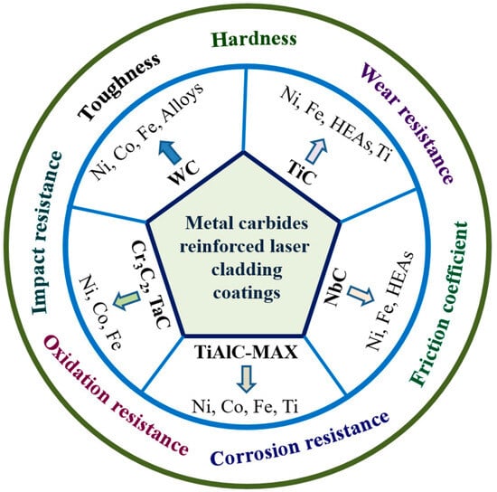 The scheme of various metal carbide-reinforced laser cladding coatings.