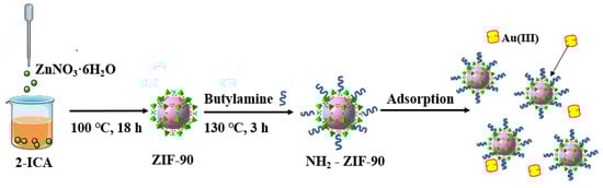 Schematic diagram of NH2-ZIF-90 preparation and adsorption process of Au(III).