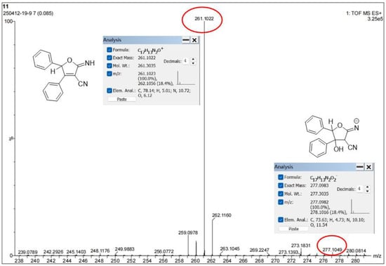 The formation of intermediate II, as illustrated by the mechanism in Scheme 3, is the crucial step in this reaction, ensuring the attack of the oxygen anion on the cyano carbon. Consequently, conducting the reaction under a nitrogen atmosphere is essential to preserving the hydroxyl group in benzoin, preventing its oxidation to benzil [44,45].
