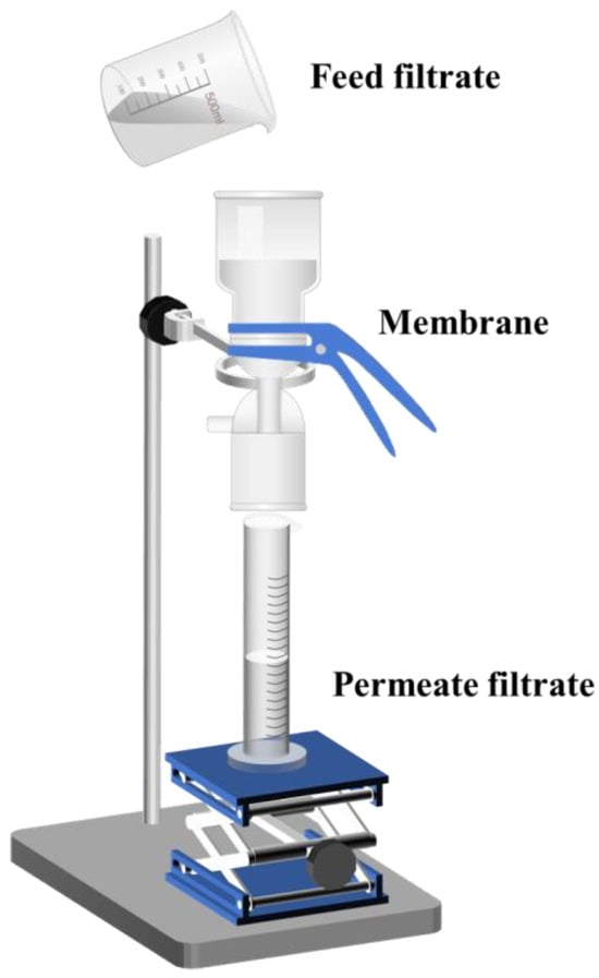 Here, J is the flux (L·m−2·h−1), V is the volume of permeate filtrate (L), S is the effective area of the membrane (m2), and ∆t is the permeation time (h).