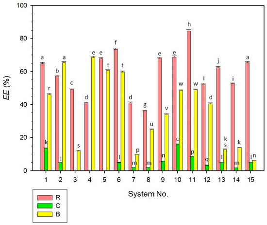 | 14 | 77.94 ± 0.32 bd | 33.24 ± 0.13 l | 110.66 ± 0.22 f | 46.02 ± 0.17 ei | 82.38 ± 0.30 c | 57.47 ± 0.20 ej |