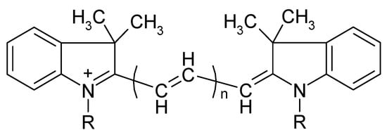 Chemical structure of polymethine dyes. DIDC—R = CH3, n = 2; Pr-DIDC—R = C3H7, n = 2; DITC—R = CH3, n = 3.