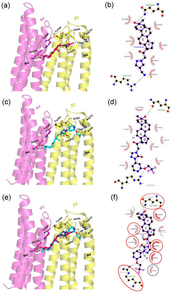 - Legesse, D.H.; Fan, C.; Teng, J.; Zhuang, Y.; Howard, R.J.; Noviello, C.M.; Lindahl, E.; Hibbs, R.E. Structural insights into opposing actions of neurosteroids on GABAA receptors. Nat. Commun. 2023, 14, 5091. [Google Scholar] [CrossRef]