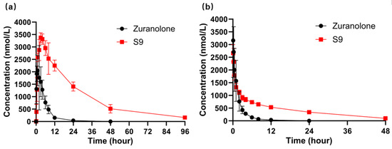 2.6.1. Pharmacokinetic Study of S9 and Zuranolone