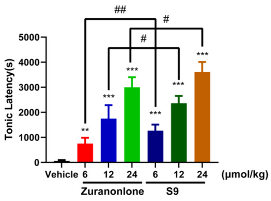 2.6. In Vivo Evaluation of Bioactivities of Zuranolone and S9 in Rats