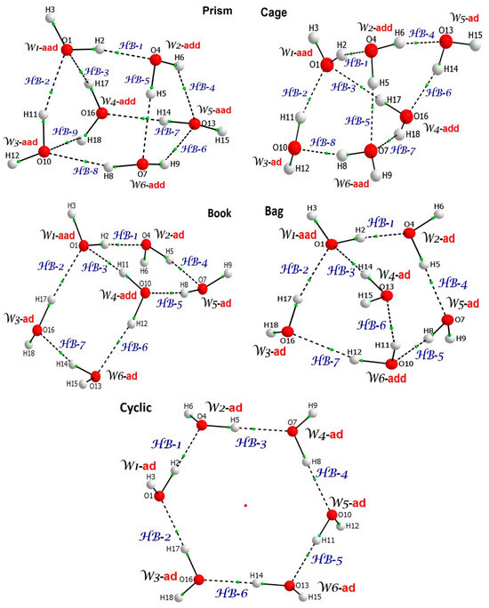- Albrecht, L.; Chowdhury, S.; Boyd, R.J. Hydrogen Bond Cooperativity in Water Hexamers: Atomic Energy Perspective of Local Stabilities. J. Phys. Chem. A 2013, 117, 10790–10799. [Google Scholar] [CrossRef]