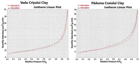 The Vadu Crişului clay catalyst has a greater value of BET surface area of 27.80 m