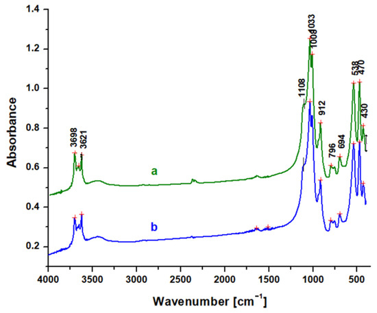 In general, the constituent units of clay minerals include hydroxyl groups, tetrahedral silicate/aluminate anions, octahedral metal cations, and interlayer cations. The spectra of