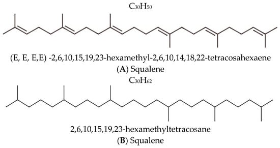 Chemical structures and nomenclature of (A) squalene and its saturated derivative (B) squalane [14,15].