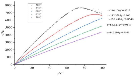Figure 1; The shear force shear rate curves at different temperatures are shown in