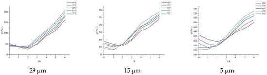 The flow equations of the adhesive at different temperatures can be obtained from Equation (1), as shown in