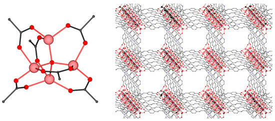 - Eddaoudi, M.; Moler, D.B.; Li, H.; Chen, B.; Reineke, T.M.; O’Keeffe, M.; Yaghi, O. Modular Chemistry: Secondary Building Units as the Basis of Design for Highly Porous and Robust Metal–Organic Carboxylate Frameworks. Acc. Chem. Res. 2001, 34, 319–330. [Google Scholar] [CrossRef]
