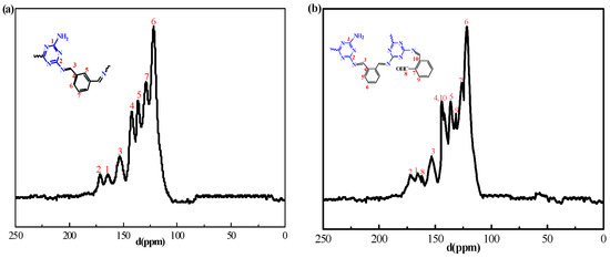 13C NMR spectra of (a) MAmPA-COF and (b) MAoPA-COF.
