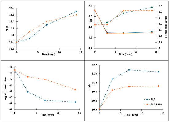 - Abdolsattari, P.; Rezazadeh-Bari, M.; Pirsa, S. Smart Film Based on Polylactic Acid, Modified with Polyaniline/ZnO/CuO: Investigation of Physicochemical Properties and Its Use of Intelligent Packaging of Orange Juice. Food Bioprocess Technol. 2022, 15, 2803–2825. [Google Scholar] [CrossRef]