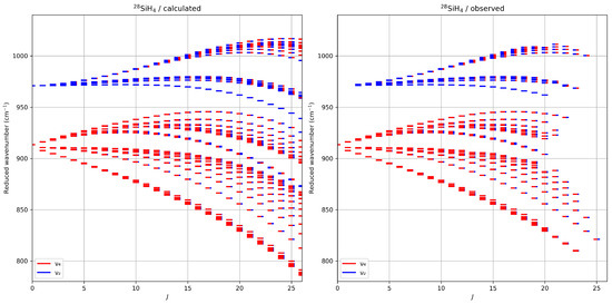 Figure 4 presents the reduced energy levels for 28SiH4, calculated as
