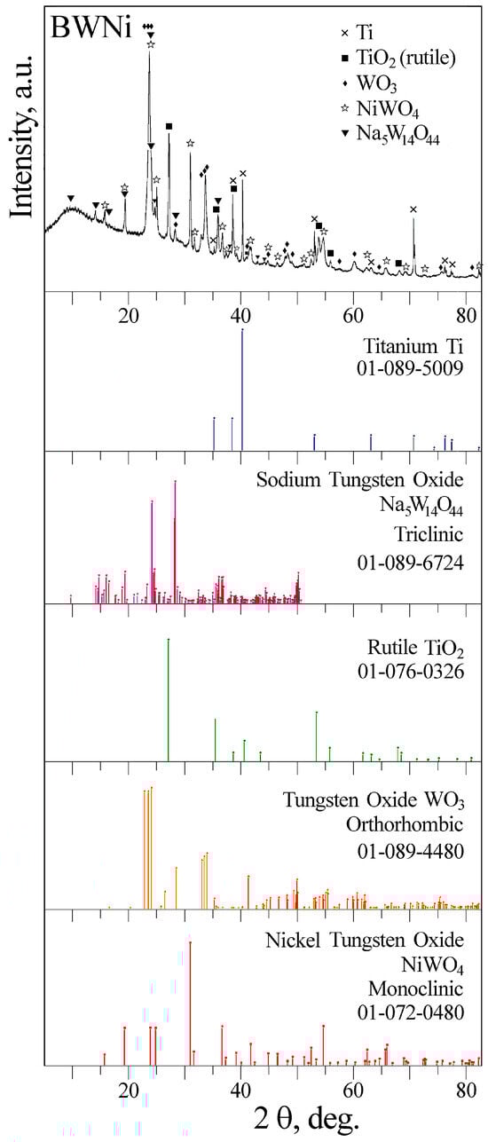| BWNi | Outer | 12.3 | 59.4 | 0.5 | - | 8.1 | 1.9 | 10.6 | 7.3 Ni |