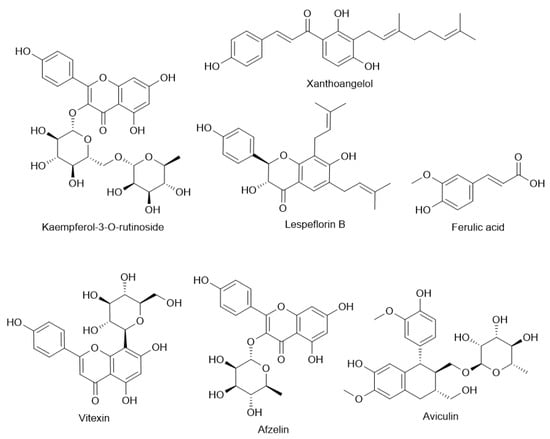 Chemical structures of different compounds found in Lespedeza sp. extracts.