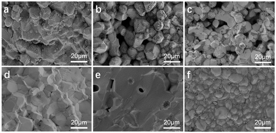 where L represents the thickness of the electrolyte pellet and S is the area of the blocking electrode. After gold sputtering, the cross-sections of the electrolyte ceramics were characterized using scanning electron microscopy (SEM). The SEM employed was a field emission Carl Zeiss Sigma 300 (Carl Zeiss AG, Jena, Germany).