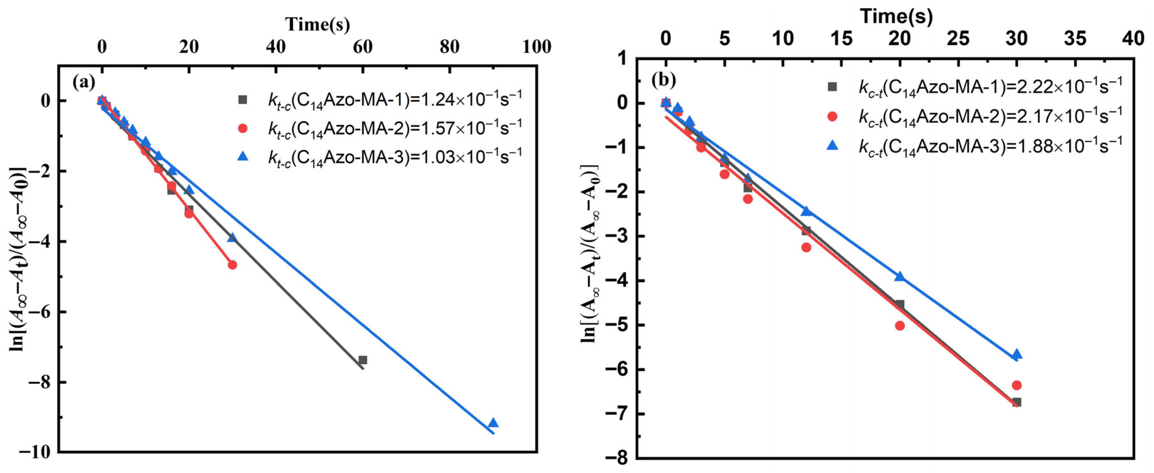 | kt-c | First-order rate constants from trans to cis |