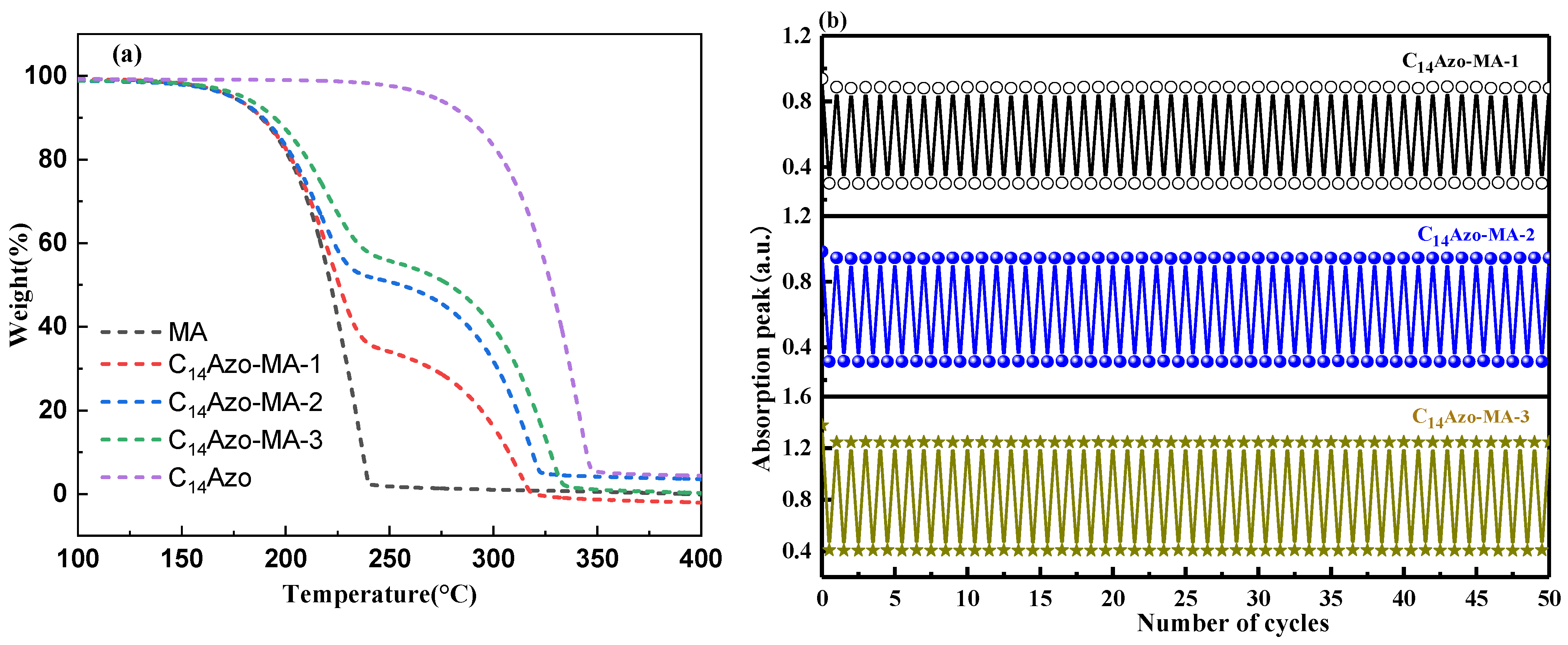| χ | The content (mass fraction) of MA in C14Azo-MA |