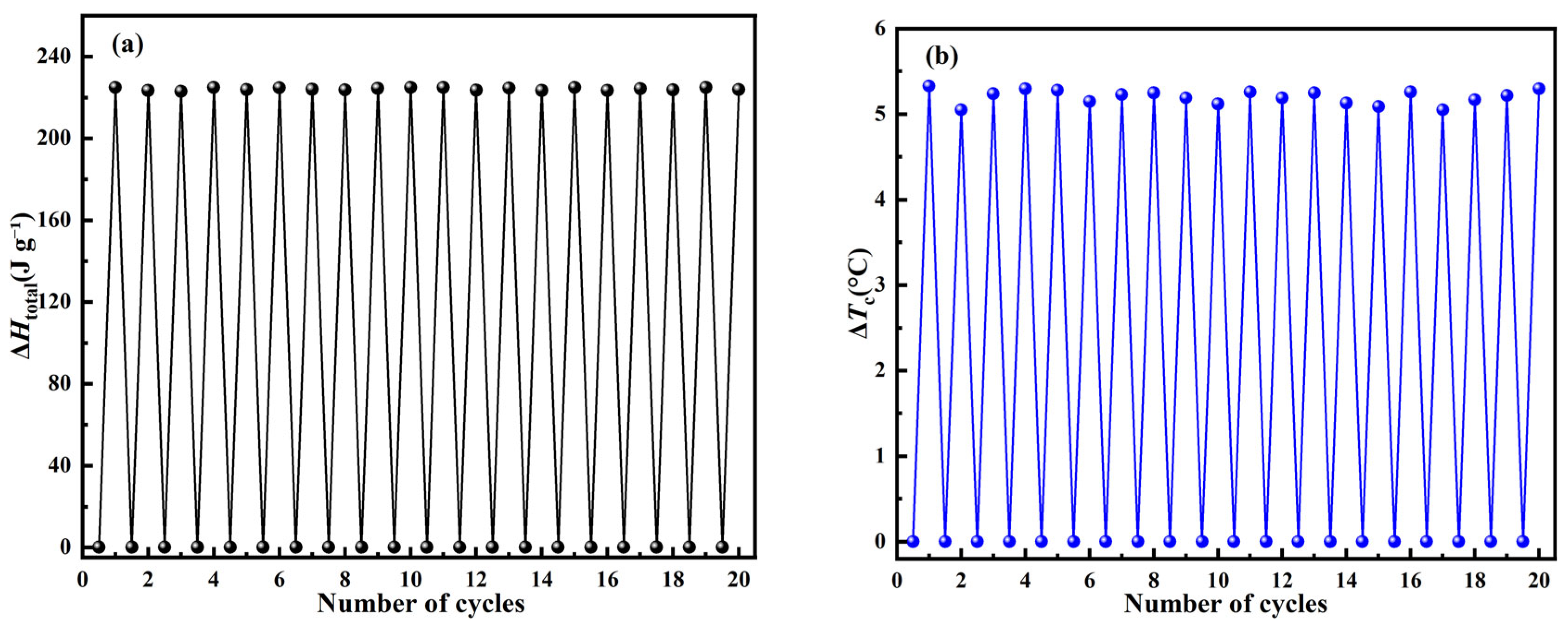 2.3. Thermal Stability and Cyclic Stability