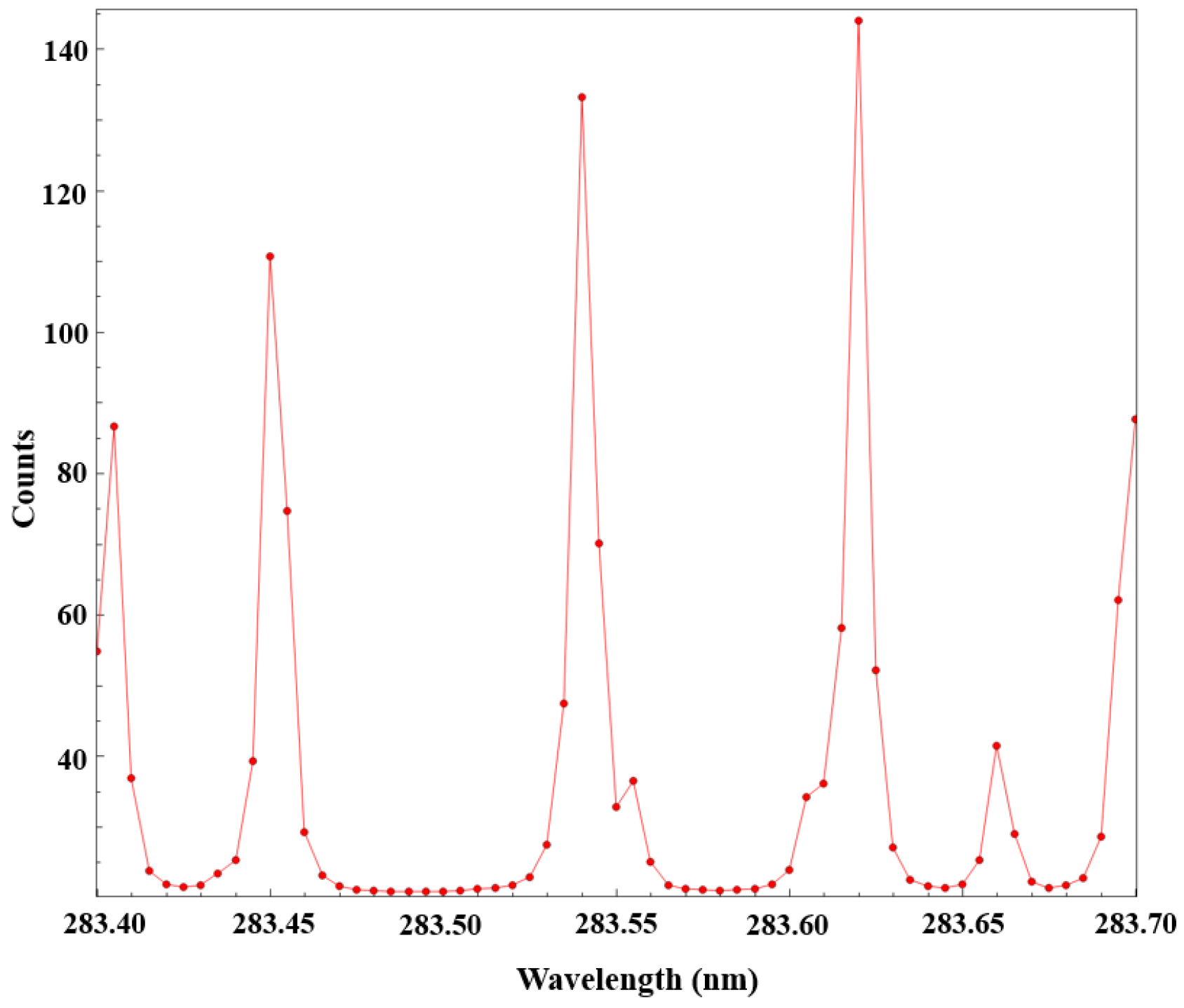 4.2. Laser System Configuration and Dye Wavelength Optimization