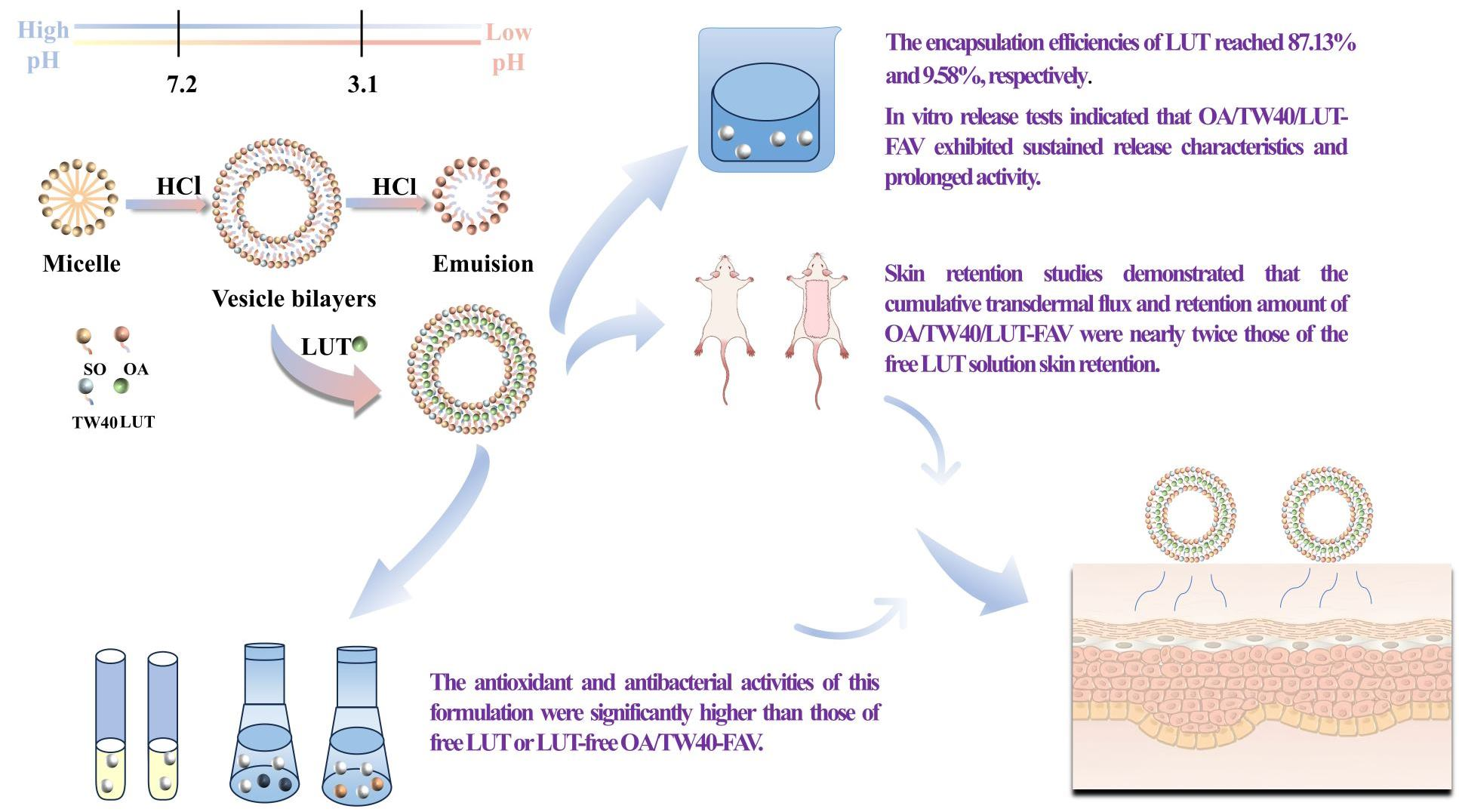2.6. Encapsulation and In Vitro Release Studies of OA/TW40/LUT-FAV