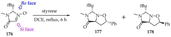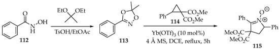 - Thakur, S.; Das, A.; Das, T. 1,3-Dipolar cycloaddition of nitrones: Synthesis of multisubstituted, diverse range of heterocyclic compounds. New J. Chem. 2021, 45, 11420–11456. [Google Scholar] [CrossRef]